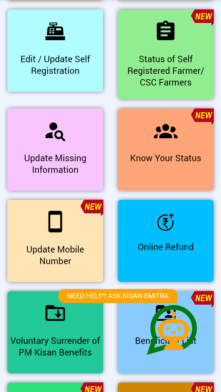 - Stetus of Self Registered Farmer : इस ऑप्शन से आप अपने रजिस्ट्रेशन की स्थिति चेक कर सकते है।