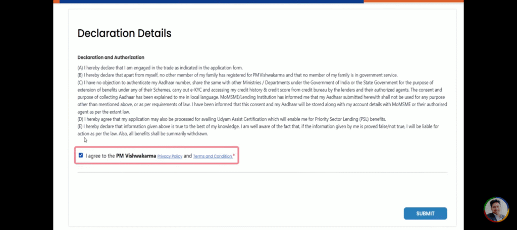 - फॉर्म को फिल करने के बाद योजना की जो भी शर्ते है उसे स्वीकार करे और सबमिट बटन पर क्लिक करें।