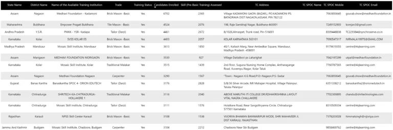 इस प्रकार आप आसानी से अपने आसपास के ट्रेनिंग सेंटर लिस्ट देख सकते है। की आपके जिले में कौन कौन से ट्रेनिंग सेंटर है।