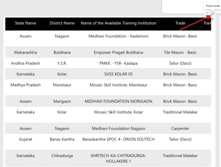 इसके बाद Focus Mode के विकल्प पर क्लिक करें इससे आप ट्रेनिंग सेंटर किस्त विस्तार से देख सकते है।